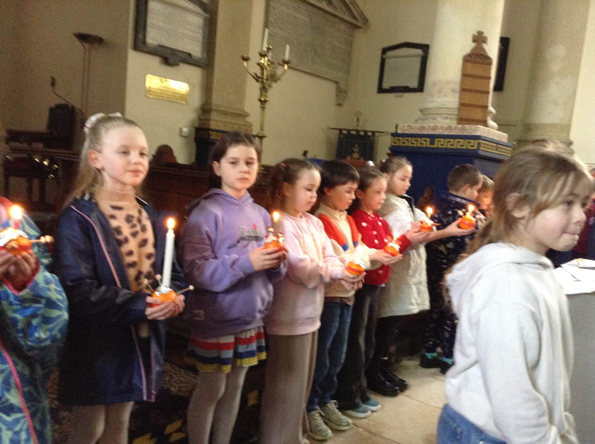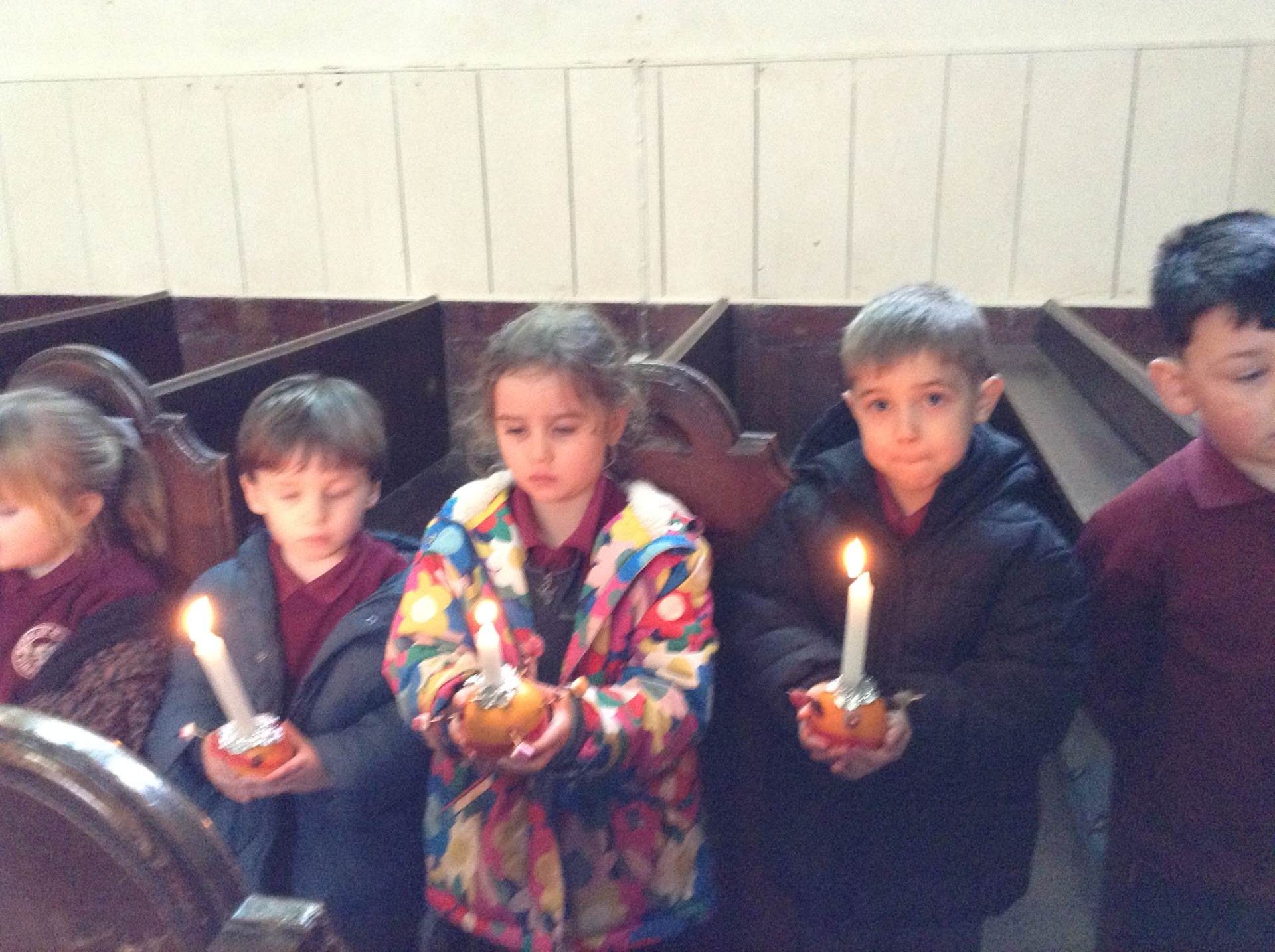 Our yearly Christingle service took place just before half term, this time involving the whole school and our parents. It was lovely to work with Caroline and Reverend Jo from the church and share all that we had learnt making the Christingles, reflect on our prayers and light up the church with our christingle candles.