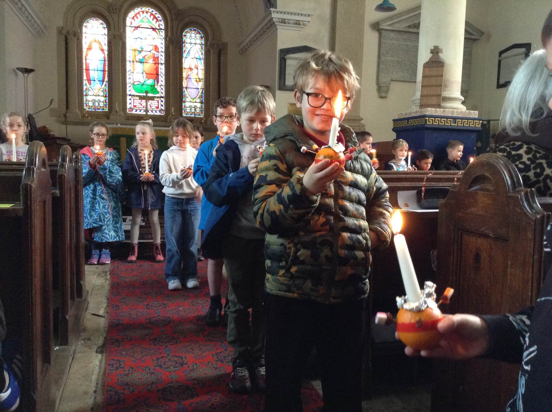 Our yearly Christingle service took place just before half term, this time involving the whole school and our parents. It was lovely to work with Caroline and Reverend Jo from the church and share all that we had learnt making the Christingles, reflect on our prayers and light up the church with our christingle candles.